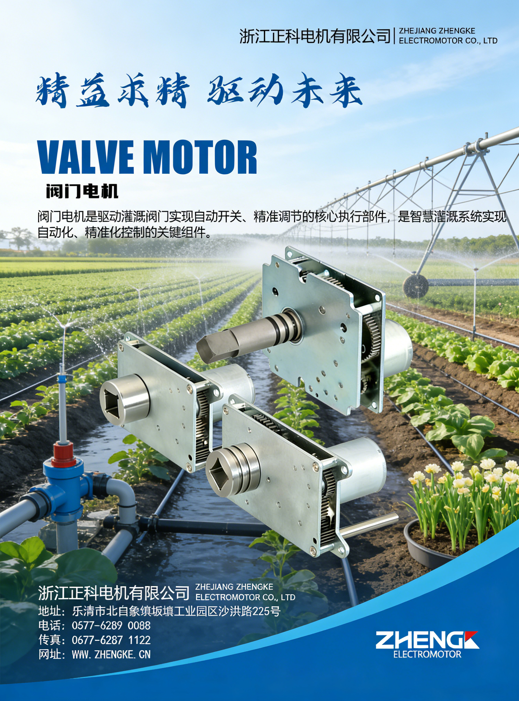 浙江正科电机有限公司是一家专注于电机研发、生产与销售的高新技术企业,核心产品涵盖智能灌溉阀门电机等系列,广泛应用于智慧灌溉、农业自动化、工业控制等领域。公司凭借先进的技术、严格的品质管控与完善的服务体系,为国内外客户提供专业的电机解决方案,致力于成为全球领先的电机产品与服务提供商。